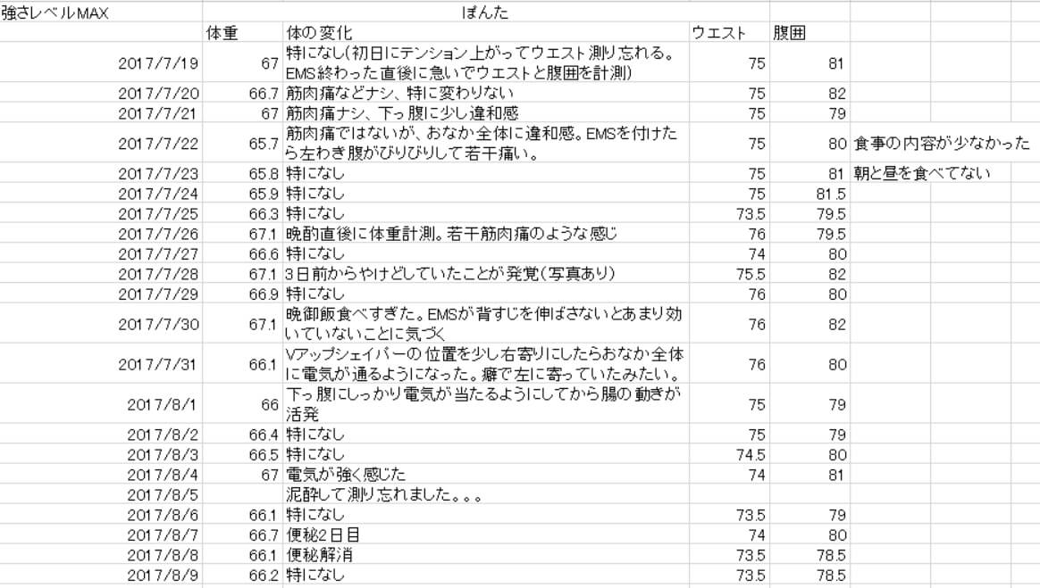 と、「体重」「ウエスト」「腹囲」全てがサイズダウン。